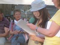(24-05-2011) Königslutter: 99 Luftballons - auf ihrem Weg zum Horizont. Für die Mahnwache am 23.05. hatten sich die KönigslutteranerInnen etwas Besonderes ausgedacht: Zur Melodie von Nenas "99 Luftballons" erklangen mehr als hundert Stimmen lebenslaut und kraftvoll gegen Atomkraft. Musiklehrer Ulli Kleinfeldt hatte den Text umgedichtet und mit Unterstützung der UWG (unabhängigen Wählergemeinschaft) 99 knallgelbe Luftballons mit Gas füllen lassen. Mit der letzten Strophe stiegen die Ballons in den blauen Himmel über dem Marktplatz und machten sich auf den Weg...der leichte Westwind trieb sie Richtung Berlin...