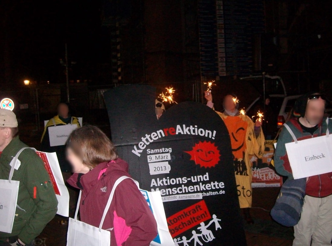 Zum 2. Fukushima-Jahrestag planen wir rund um das Atomkraftwerke Grohnde eine spektakuläre Aktion, wie es sie in Deutschland noch nicht gegeben hat: Mit einer Aktions- und Menschenkette wollen wir im Abstand von etwa 40km vom Reaktor zeigen, welches Ausmaß eine Katastrophe wie Fukushima in Deutschland haben könnte und die Stilllegung der noch laufenden Atomanlagen fordern.