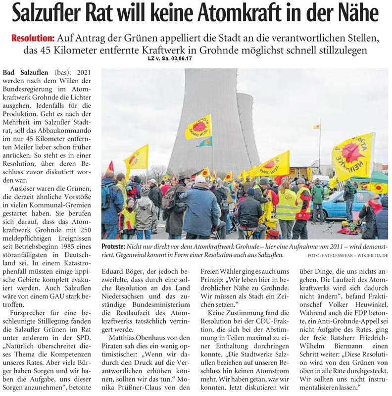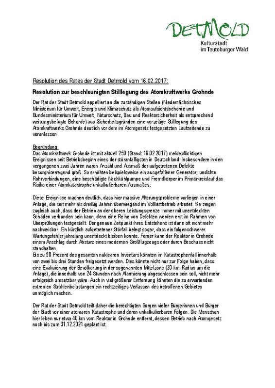 An dieser Stelle dokumentieren wir, in welchen Kommunen die Forderung nach schnellerer oder sofortiger Stilllegung des AKW Grohnde mit welchem Ergebnis beraten worden ist oder noch beraten wird, soweit uns dies mitgeteilt worden ist. Für ergänzende Hinweise, Material und weitere Infos sind wir dankbar.