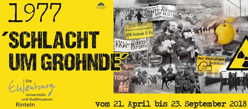 (Di. 02-05-2017) Die Ausstellung 40 Jahre "Schlacht um Grohnde" wechselt heute die Location und wird bis Ende nächster Woche (12. Mai) im Kreishaus des Landkreises Göttingen in der Reinhäuser Landstraße 4 zu sehen sein. Zum Auftakt führt heute um 15.30 Uhr der Hamelner Historiker Bernhard Gelderblom in die von ihm erstellte Ausstellung ein. In der zweiten Mai-Hälfte soll die Ausstellung dann in Bad Pyrmont zu sehen sein. Anfragen zur Ausleihe der Ausstellung bitte an ausstellung(ätt)grohnde-kampagne.de